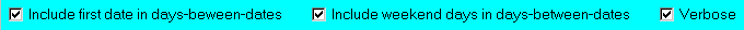 The Verbose option adds or omits a statement of the first two options. The image below shows what happens when adding 31 days to July 1st, 2005, with the following combination of options. In each case the operation is performed first with Verbose checked and then without. and