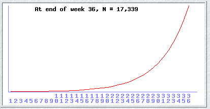 The general problem is how to estimate the number of things existing (starting from a certain number of them) after a certain period of time if those things replicate themselves in a certain way at fixed time intervals.